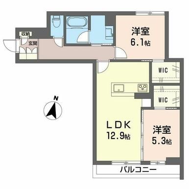 | 間取り | 2LDK(LDK12.9帖 洋室6.1帖 洋室5.3帖) | 主要採光面 | 南 |