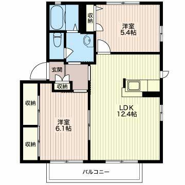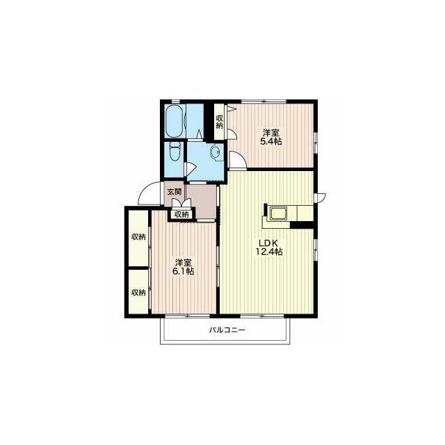 | 間取り | 2LDK(LDK12.4帖 洋室6.1帖 和室5.4帖) | 主要採光面 | 南 |